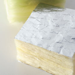 ประกอบขึ้นด้วยเส้นใยแก้วจำนวนมาก สามารถป้องกันความร้อนและทนต่อการกัดกร่อนของสารเคมีต่าง ๆ แต่ก็มีข้อด้อยคือไม่ทนต่อความเปียกชื้น หากเส้นใยถูกความชื้นหรือหยดน้ำก็จะยุบตัวแบนติดกัน และถ้าคนที่แพ้เส้นใยเหล่านี้ หากสัมผัสหรือแตะต้องโดยตรง อาจเกิดอาการคันและระคายเคือง ดังนั้นผู้ผลิตจึงนำอะลูมิเนียมฟอยล์มาหุ้มไว้รอบด้าน เพื่อให้มีประสิทธิภาพในการสะท้อนความร้อนสูง ช่วยให้ความร้อนที่ผ่านมายังใยแก้วมีจำนวนน้อยที่สุด จึงช่วยประหยัดค่าไฟ นอกจากนี้ยังกันเสียงได้ดี