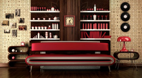 เป็นรูปแบบการจับคู่เก้าอี้และพื้นจะเป็นลักษณะของห้องพักสไตล์ย้อนยุค ออกแบบโดย Nyoman Winaya