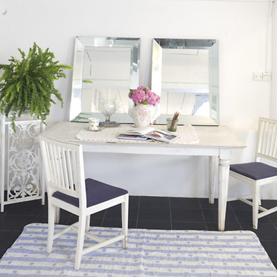ไม่ว่าจะนั่งรับประทานอาหาร นั่งรอ นั่งเล่น หรือนั่งพักผ่อน เราจำเป็นต้องหาเก้าอี้นั่งสบายๆมาไว้ตามมุมต่างๆ ยิ่งถ้าน้ำหนักเบาดีไซน์สวยด้วยแล้ว จะวางแยกหรือจัดแบบยกชุดวางเข้าคู่กับโต๊ะกินข้าวอเนกประสงค์ก็ได้ วันไหนเพื่อนมาปาร์ตี้เป็นหมู่คณะก็ใช้รับรองได้สบาย ถ้าเบื่อจะวางชิดผนังจับคู่กับโต๊ะข้างตัวเล็ก ก็กลายเป็นมุมน่านั่งเพิ่มอีกมุมในบ้าน