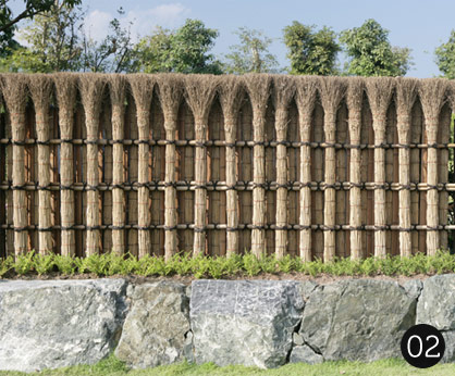 รั้วแบบนี้มาจากบ้านญี่ปุ่นที่นิยมมัดกิ่งไม้แห้งเป็นมัด ๆ แล้วยึดเป็นแนวรั้วด้วยไม้ไผ่ รั้วจากวัสดุธรรมชาตินี้เหมาะกับบ้านในสวนให้ความรู้สึกเป็นธรรมชาติ แต่ถ้าหากรู้สึกไม่ปลอดภัยจะก่อผนังปูนหรือรั้วเหล็กซ่อนอยู่ภายในอีกชั้นก็ช่วยได้