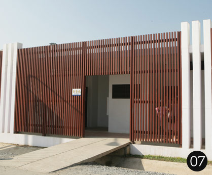 เหมาะกับบ้านที่มีพื้นที่น้อยหรือมีรั้วชิดกับบ้าน แนะนำให้ทำรั้วให้ดูสูงโปร่ง สูงคลุมตัวบ้านเพื่อกั้นมุมมองจากภายนอกทั้งชั้นบนและชั้นล่าง โดยตีโครงเหล็กเว้นระยะห่างเท่า ๆ กัน ให้ความรู้สึกกึ่งทึบกึ่งโปร่ง ช่วยลดความอึดอัดลงได้