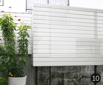 หากรั้วบ้านเดิมเตี้ยจนปิดสายตาจากเพื่อนบ้านไม่ได้ แนะนำให้ทำแผงอะลูมิเนียมแบบมีรูเล็ก ๆ ให้ดูโปร่งตาและมีน้ำหนักเบา สามารถยึดกับโครงสร้างเหล็กของกำแพงบ้านได้ ไอเดียนี้ช่วยบังสายตาจากภายนอกได้ดี ทั้งยังดูสวยงามด้วย