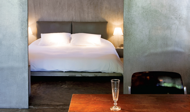 กรุแผ่นสังกะสีบนประตูบานเลื่อนให้กลืนกับผนังปูนซีเมนต์ขัดมัน เมื่อเปิดออกจะพบกับห้องด้านในที่มีลักษณะคล้ายห้องลับซ่อนอยู่หลังผนัง