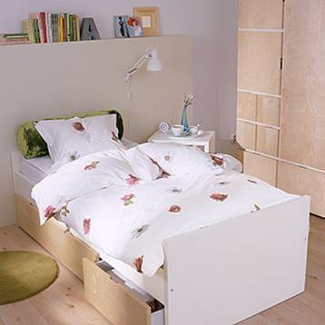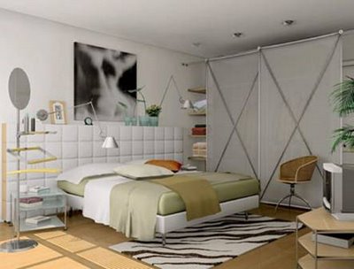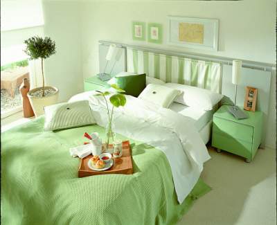 เป็นการจัดห้องนอนแบบที่ง่ายที่สุด คือ เน้นความสะอาดตา และสีของชุดเครื่องนอนที่ใช้จะเพิ่มความน่ารักให้กับห้อง โดยไม่ต้องตกแต่งด้วยเฟอร์นิเจอร์ที่มีราคาแพง แต่แอบเก๋ด้วยโคมไฟสวย-สวยที่หัวนอน