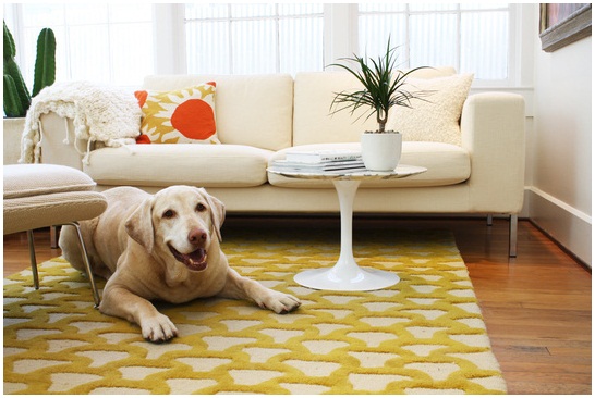 นอกจากน้องหมาคู่ใจแล้ว  พรม โต๊ะกาแฟ และลวดลายของหมอนอิง นั้นสามารถช่วยทำให้ห้องดูสดใจขึ้นได้เหมือนกัน