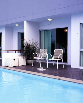 1. อยากจะนั่งรับลมเย็นนอกบ้านให้ชื่นใจ แนะนำให้หามุมใกล้น้ำ จะบ่อน้ำ สระว่ายน้ำ หรือสวนน้ำก็ได้ เพื่อให้ลมพัดนำพาไอเย็นมากระทบผิวสัมผัสบ้าง โดยเฟอร์นิเจอร์ที่เหมาะกับมุมใกล้น้ำไม่ควรเป็นไม้ เพราะอาจเสี่ยงกับความชื้นสูง เลือกเก้าอี้พลาสติกทรงโปร่งยกย้ายง่ายแถมระบายเหงื่อจากผู้นั่งได้ดีกว่า