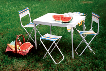 3. การปิกนิกเป็นอีกทางเลือกที่น่าสนใจและช่วยให้คุณได้สนุกสนานไปกับลมร้อนและแสงแดดแห่งฤดูกาลด้วย ลองหาซื้อโต๊ะ-เก้าอี้ที่เน้นฟังก์ชันของการพกพาซึ่งสามารถพับเก็บและกางได้โดยไม่ยุ่งยาก วัสดุเบา ยกสบาย มีสีสันสดใส เพื่อคุณจะได้ไปเน้นการหอบหิ้วอาหารและเครื่องดื่มแทน