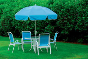 4. แรงบันดาลใจจากท้องฟ้าก็มักจะช่วยเติมความสดชื่นให้กับเฟอร์นิเจอร์ในมุมนั่งเล่นนอกบ้านได้ดี ลองเลือกชุดเฟอร์นิเจอร์กลางแจ้งที่ใช้วัสดุสังเคราะห์ประเภทเส้นใยโปร่งเบา ระบายเหงื่อได้ และไม่ขึ้นรา หากทิ้งตากฝนไว้ โดยเน้นโทนสีฟ้าเพื่อให้เข้าบรรยากาศของวันพักผ่อนที่สดชื่น