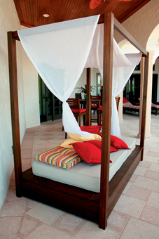 5. คล้ายๆ กับเตียง 4 เสา แต่ตัวนี้ประยุกต์มาเป็นโซฟาเบด 4 เสา สำหรับคนที่รักจะนอนเอกเขนกรับลมชมวิวแต่กลัวแดดแรง ก็ควรเลือกมุมกึ่งกลางแจ้งซึ่งพอจะมีหลังคาปกคลุมให้ดูน่าสบาย