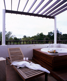 7. ใครพอมีงบประมาณก็ลองสร้างมุมโฮมสปากึ่งกลางแจ้งของตัวเองดู อาจใช้พื้นที่ระเบียงสำหรับจัดวางอ่างน้ำจากุซซี่กับเก้าอี้ไม้อาบแดด พอเย็นย่ำก็เปิดน้ำนอนแช่ตัว จุดเตาเผาน้ำมันหอม และเปิดเพลงเบาๆ ก็ได้สวรรค์ส่วนตัวแล้ว