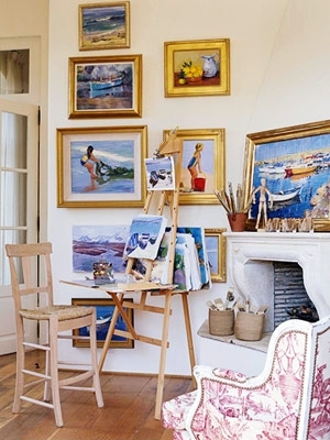 ภาพนี้มีไอเดีย น่ารักๆ อย่างแรกคือเจ้าโต๊ะนักเรียน 4 ตัว เห็นแล้วนึกถึงวันวาน ลองหาโต๊ะเก่าๆอย่างนี้มาวางเรียงกันเป็นเคาน์เตอร์สำหรับวางโทรศัพท์ กรอบรูป ฯลฯ ถ้าความสูงไม่เท่ากันก็จัดการตัดขาออก ทำให้โต๊ะสูงเท่ากันได้ไม่ยาก จะทาสีใหม่หรือเก็บไว้แบบเดิมก็สวยอยู่แล้ว อีกไอเดียคือรูปสวยๆในกรอบรูปบนผนัง เห็นอะไรชอบอะไรก็ตัดแล้วนำมาใส่กรอบได้นะ เช่น ปฏิทินเก่าข้ามปี โปสการ์ด หน้านิตยสาร ฯลฯ