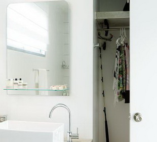 ถ้าเคาน์เตอร์อ่างล้างหน้าคือส่วนแต่งตัวของสาวๆ ต้องระวังเรื่องแสงไฟให้ดี เพราะแสงที่สลัวๆจะดูหลอกตา แต่งหน้าทีไรเข้มเป็นงิ้วทุกที หลีกเลี่ยงการใช้หลอดไฟออกสีส้มๆประเภทวอร์มไวท์โดยเด็ดขาด แนะให้ใช้หลอดไฟแสงสีขาว เช่น คูลไวท์หรือเดย์ไลต์ ติดรอบๆกระจกเงา หรือจะซ่อนไฟให้แสงเรืองไม่แยงตา ก็ช่วยให้มองเห็นสีของเครื่องสำอางชัดเจน หรือถ้าเป็นไฟดาวน์ไลต์บนฝ้าเพดาน เลือกติดให้ตำแหน่งโคมไฟเบี่ยงไปทางด้านหลัง เพื่อลดแสงตรงๆที่ทำให้เกิดเงาบนใบหน้า