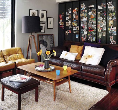 เนื่องจากบินเป็นผู้กำกับภาพยนตร์โฆษณา และชื่นชอบชมภาพยนตร์ต่างๆ เป็นอย่างมาก ดังนั้นจึงมีคอลเลคชั่นแผ่น DVD จำนวนมากที่ต้องการพื้นที่จัดเก็บ ผนังหลังโซฟาที่ดูเผินๆ อาจคิดว่าเป็นแผ่นผนังตกแต่ง แท้จริงแล้วคือตู้เก็บของขนาดใหญ่ที่เต็มไปด้วย แผ่น DVD หน้าบานกรุทับอีกชั้นด้วยแผ่นเหล็กไม่ทาสี ปัจจุบันเริ่มเกิดสนิมเป็นริ้วรอยที่น่าสนใจ และเป็นที่ติดโชว์ปุ่มแม่เหล็ก โปสการ์ด ภาพถ่าย ที่เธอได้มาจากการเดินทางจนกลายเป็นผนังที่สร้างสีสัน ให้กับห้องนั่งเล่น และสะท้อนความเป็นตัวตนของครอบครัวนี้