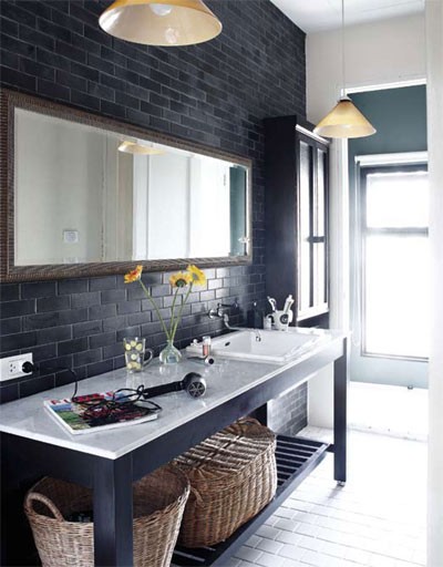 ห้องน้ำ พงศกรออกแบบให้เหมาะสมกับรูปแบบการใช้งานของเธอ ด้วยการออกแบบเคาน์เตอร์ขนาดใหญ่ที่ดูคล้ายโต๊ะทรงโล่งตา แทนที่จะทำเป็น เคาน์เตอร์หน้าบานทึบแบบทั่วๆ ไป พลอยเป็นคนแต่งตัวในห้องน้ำ บอกเขาว่าอยากได้เคาน์เตอร์ยาวๆ ไว้วางของ และแต่งตัวในนั้นเลย เขาก็ออกแบบมาอย่างที่เห็น ตอบโจทย์การใช้ชีวิตจริงของเรา พลอยเล่า โทนสีในห้องน้ำยังคงไปในทิศทางเดียวกับส่วนอื่นๆ ของบ้าน กระจกเงา บานใหญ่สไตล์กรอบรูป ช่วยให้ดูสวยงามคลาสสิก เช่นเดียวกับของชิ้นอื่นๆ ในบ้านนั่นเอง