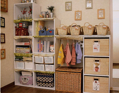 4.  วัสดุประกอบ  มีอุปกรณ์หลายอย่างที่เอามาใช้กับเฟอร์นิเจอร์กล่องได้ เช่น ชั้นตะแกรงเหล็ก ถาดพลาสติก กล่องกระดาษ หีบต่าง ๆ ซึ่งของเหล่านี้บางทีอาจจะดูไม่สวยหรือดูตลาด ๆ ถ้าเรานำของพวกนี้มาใส่ไว้ในกล่องที่เรียบร้อยสวยงามเป็นระเบียบก็จะช่วยให้มีที่เก็บของเพิ่มขึ้น โดยที่ของประกอบเหล่านั้น จะมีหน้าตาที่ดูดีขึ้นอย่างนึกไม่ถึงเลยทีเดียว