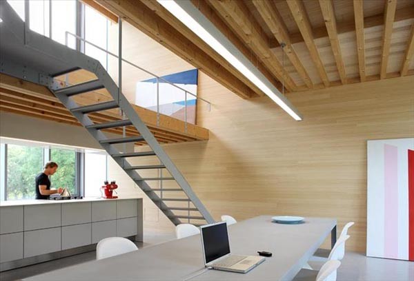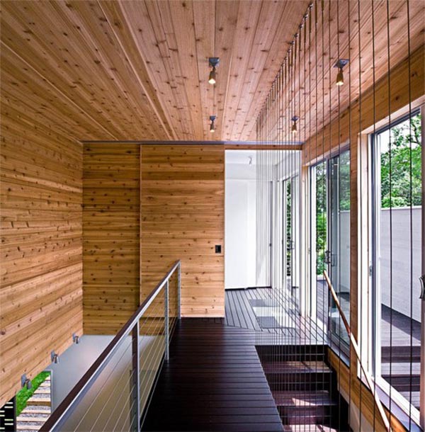 ห้องนั่งเล่นจะใช้ไม้บางส่วนจะใช้แค่กันตรงราวบันไดเพื่อให้ดูเป็นมิติ