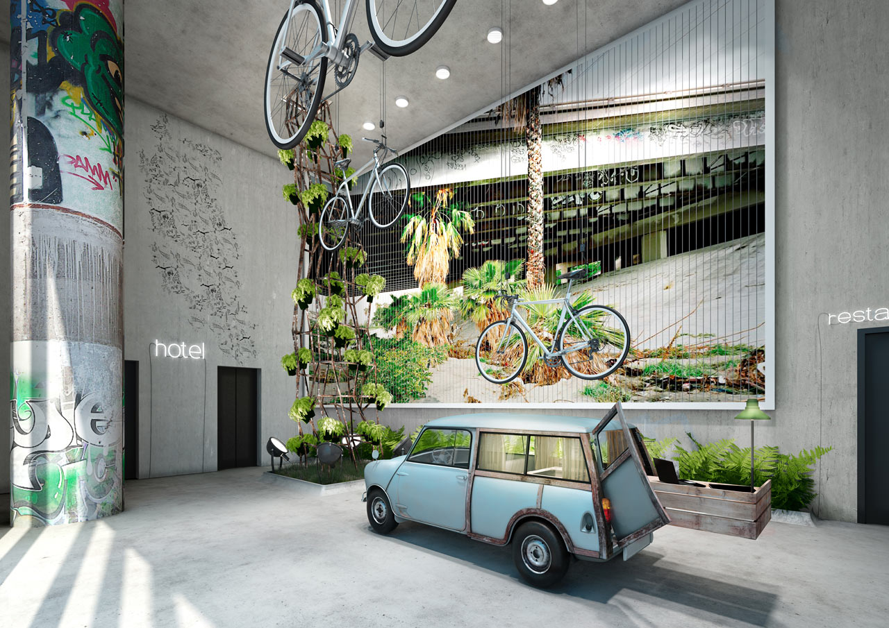 โรงแรม 25hours Hotel โรงแรมนี้ตั้งอยู่ในใจกลางย่านเมืองเบอร์ลิน ประเทศเยอรมัน ออกแบบโดยนำการผสมผสานที่เป็นเอกลักษณ์ของสวนสัตว์และป่าในเมืองด้วยกันด้วยทำเลที่ตั้งอยู่ข้างสวนสัตว์เบอร์ลิน กับครึ่งหนึ่งของห้องพักที่สามารถมองเห็นลิงและช้างพื้นที่ของสวนสัตว์และอีกครึ่งหนึ่งมองออกไปจะเห็นโบสถ์ Kaiser Wilhelm