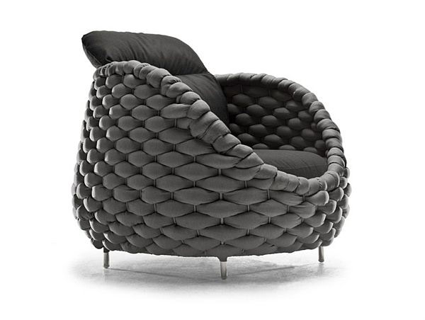 เป็นดีไซน์ที่เจ๋งมากๆ เลยค่ะ เป็นการสานเก้าอี้ด้วยผ้าหนาๆ ซึ่งส่วนมากที่เป็นเก้าอี้สานนั้นจะทำมาจากวัสดุธรรมชาติ แต่เก้าอี้ตัวนี้โครงสร้างนั้นทำมาจากเหล็กและสานด้วยผ้าหนาๆ เจ๋งมากค่ะ