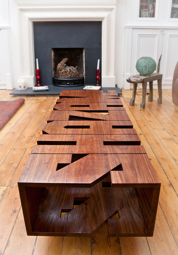 วันนี้ homedecorthai ขอนำเสนอ โต๊ะกาแฟที่มีดีไซน์แปลกแต่มีเสน่ห์มากทีเดียวกับการใช้คอลเลกชันตัวอักษรมาใช้ออกแบบโต๊ะการแฟนี้ได้อย่างทรงเสนห์ โต๊ะกาแฟนี้ทำมาจากไม้โอ๊คที่รมควันเพราะเนื้อไม้ของโอ๊คนั้นพอรมควันแล้วจะให้สีที่เข็มขึ้นดูเข็มขรึมและมีเสน่ห์มากทีเดียว ถูกออกแบบโดย EViL ED และ Dan Robotic มีความยาว 100 ซม. และกว้าง 40 ซม. โต๊ะกาแฟนี้สามารถเก็บของได้ด้วยกับการที่พวกเขาได้ดีไซน์ให้มีช่องว่างใส่ของเพื่อประหยัดพื้นที่และง่ายต่อการยิบจับ