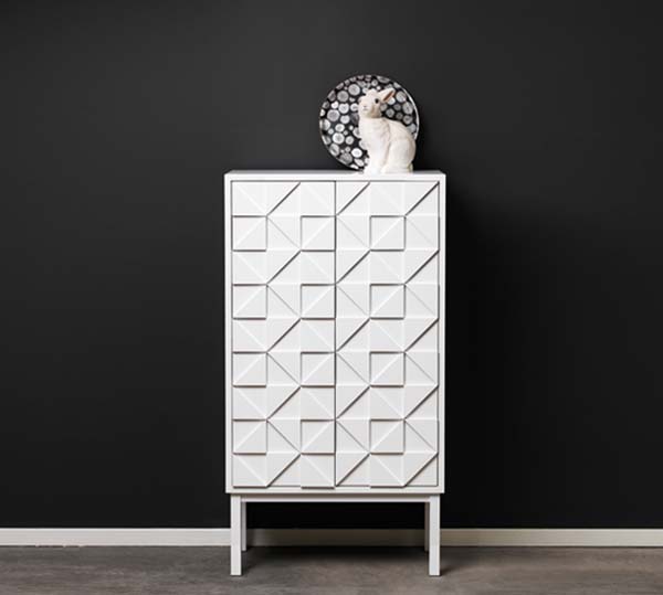 เป็นการออกแบบตู้ที่มีสีสันสดใสออกแบบโดยนักออกแบบชาวสวีเดน ตู้นี้ทำมาจากไม้ทำลวดลายด้วยการแกะสลักจึงทำให้ดูเป็นมิติมากขึ้น รูปทรงนั้นจะเป็นสามเหลี่ยม ไปดูผลงานของเขากันดีกว่าค่ะ