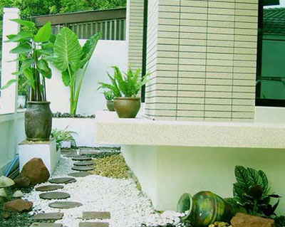 1. ควรตั้งกระถางต้นไม้ที่มุมต่าง ๆ ของบ้าน แต่งห้องรับแขกด้วยอ่างน้ำพุหรือตู้ปลา
