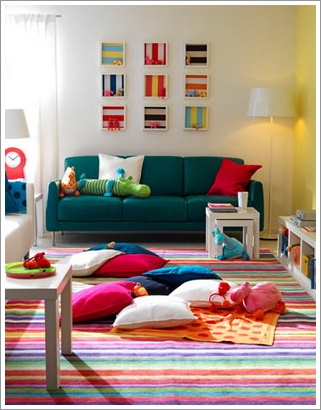 ห้องนั่งเล่นที่มีสีสันสะดุดตา ให้อารมณ์สนุกสนาน