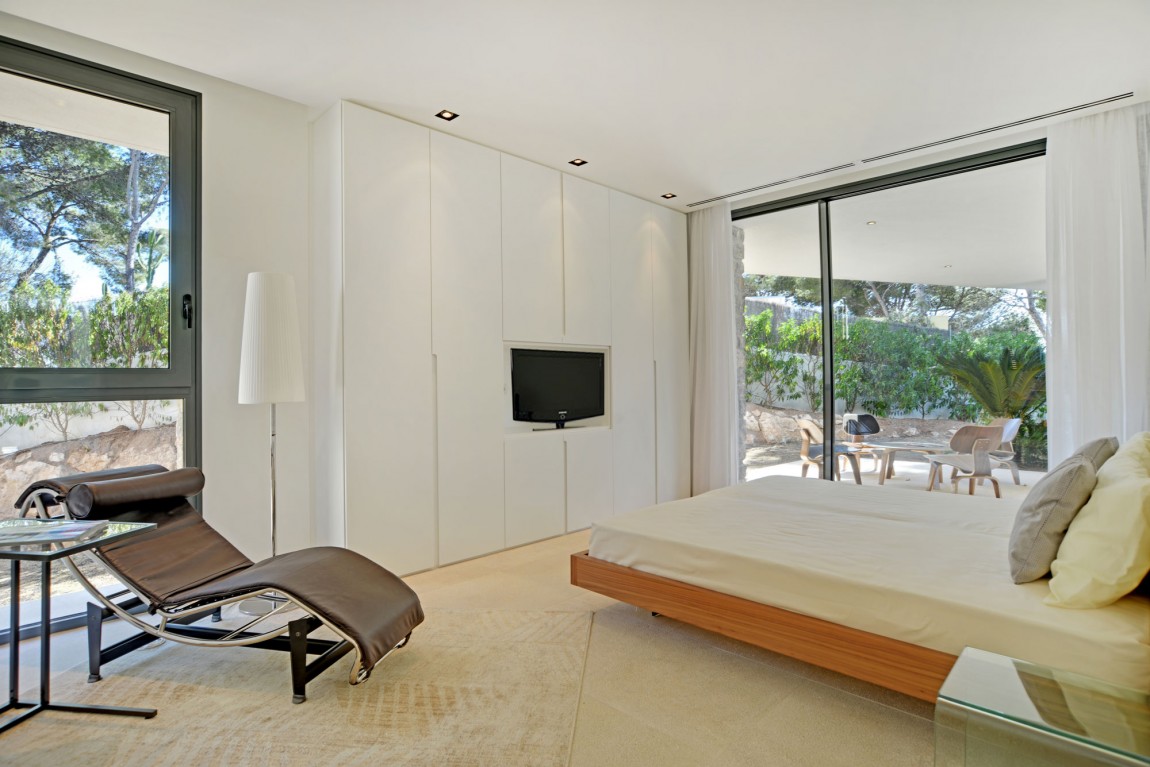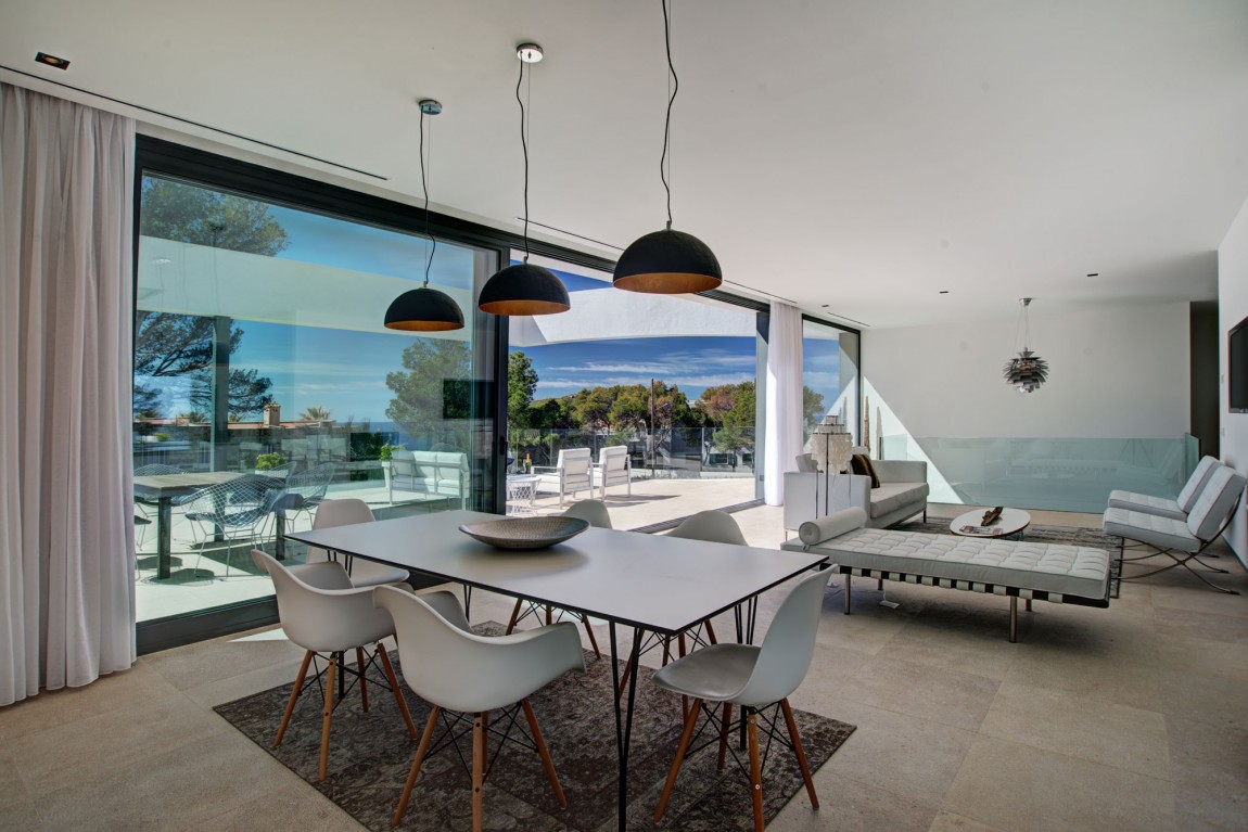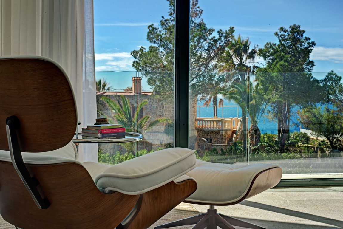 สถาปัตยกรรมโดยรวมของบ้านก็คือการผสมผสานที่ดีของความร่วมสมัยที่มีความหมาย Midcentury (ไม้และโลหะมีบทบาทสำคัญในการตกแต่งภายใน) ทั้งนี้ส่วนที่ดีที่สุดของบ้านคือการเปิดมุมมองที่สวยงามของชายฝั่งทะเลเมดิเตอร์เรเนียนที่มีหาดทรายและน้ำทะเลสีฟ้าคราม
