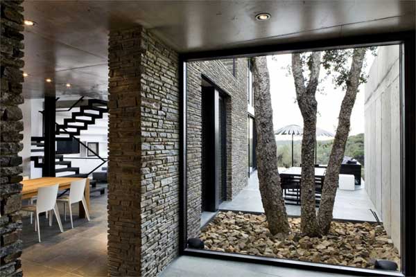 เป็นการออกแบบที่ดูสวยหรูเรียบง่าย ร่วมสมัย ภายตกแต่งผนังโดยการก่ออิฐ เน้นโชว์พื้นผิว พื้นที่รับประทานอาหารเชื่อมต่อกับห้องครัวและห้องนั่งเล่น เปิดโล่งถึงกันหมด ทำให้ดูกว้างขวาง และยังมีสระว่ายน้ำที่ล้อมรอบด้วยสีเขียวของสวนเพื่อเพิ่มความสดชื่นให้กับบ้านอีกด้วย    Read more