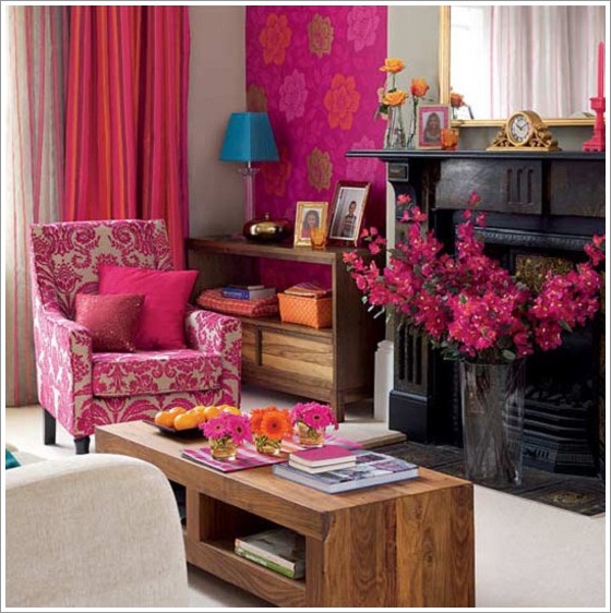 Vibrant pink living room