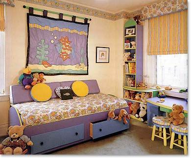 ห้องนอนเด็กควรตกแต่งห้องให้น่าสนใจด้วยจินตนาการของการเลือกสี เด็กเล็กมักจะให้ความสนใจต่อสี การเลือกเฟอร์นิเจอร์จึงมักเรียบง่ายแต่เน้นสี ให้สะดุดตาและเป็นจุดสนใจกับเด็ก