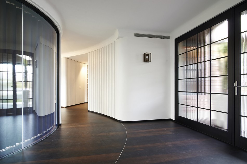 ภายในบ้านเน้นความสวยงามที่เรียบง่าย การตกแต่งด้วยเฟอร์นิเจอร์หลักๆ ถูกจัดวางให้พอเหมาะ และไม่มากชิ้นนัก ผนังสีขาว-ครีมอ่อน ตัดกับพื้นบ้านที่เป็นสีทึบและเข้ม กรอบประตูเน้นสีเข้มเพื่อให้ตัดกันโดดเด่นกับผนังขาวๆของตัวบ้าน