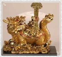 เต่าที่ประเทศจีน ในอดีตเมื่อหลายพันปี มีการค้นพบแผนผังลั่วซูบนหลังเต่าที่ขึ้นมาจากแม่น้ำลั่วหยาง และแผนผังนี้ก็ได้นำมาเป็นแผนผังโป่ยข่วย หรือ แผนผังแปดทิศ ที่ใช้กันอย่างแพร่หลายในปัจจุบันเนื่องจากเต่าเป็นสัตว์มงคลที่มีความเกี่ยวพันกับเทพเจ้าและสิ่งศักดิ์สิทธิ์ จึงมีการนำรูปปั้นเต่ามาใช้เพื่อส่งเสริมความเป็นมงคลให้กับชีวิต และเพื่อหลีกเลี่ยงเคราะห์ภัยต่างๆ จึงนับได้ว่ารูปปั้นเต่าเป็นอุปกรณ์ที่สำคัญอีกชนิดหนึ่งสำหรับฮวงจุ้ยเต่าเป็นสัตว์ที่อายุยืน ดังนั้นการวางรูปปั้นเต่าไว้ในบ้านจึงช่วยส่งเสริมให้คนสูงอายุในบ้านมีอายุยืน คนเจ็บคนไข้หายเจ็บป่วย คนหนุ่มคนสาวจะมีโชคมีลาภ และเด็กเล็กเจริญเติบโต ในขณะเดียวกันยังสามารถใช้เต่าเพื่อสลายพลังปราณชี่พิฆาตได้ด้วย โดยการตั้งเต่าให้หันหน้าไปยังทิศที่มีปราณชี่พิฆาตต่างๆ