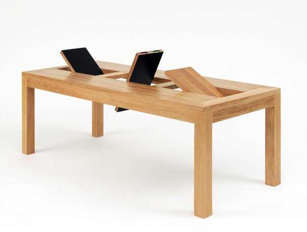 เป็นการออกแบบของ Tianyu Xiao ที่เขาได้ให้ไอเดียการออกแบบโต๊ะกระดานดำนี้เพื่อความสนุกสนานและแตกต่าง เป็นโต๊ะที่ดูเรียบง่ายและดูสะอาดตา ลองมาดูลูกเล่นของเขากันค่ะว่าเขาทำกันยังไง