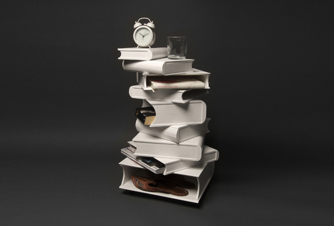 เป็นการออกแบบชั้นวางที่เรียกได้ว่าแนวจริงๆค่ะ เพราะเขาได้นำรูปแบบของกองหนังสือมาเป็นแบบในการออกแบบชั้นวางหนังสือนี้ที่สุดแนวนี้ ซึ่งทำให้รู้สึกถึงความขี่เล่นของชั้นว่างนี้ด้วยละค่ะ