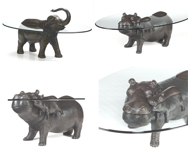 ซึ่งจะใช้รูปสัตว์มาทำเป็นโต๊ะอาหารเช่นตัวนี้จะใช้แรดในการทำขายืนของโต๊ะซึ่งดูแล้วเหมือนกำลังโผล่พ้นน้ำ