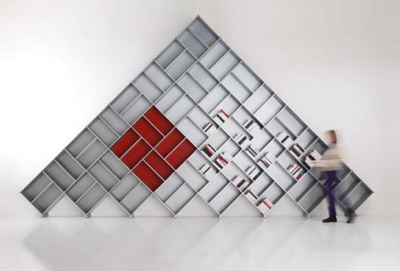 เป็นการออกแบบชั้นเก็บหนังสือที่เปลี่ยนมุมมองแนวคิดการออกแบบได้อย่างน่าทึ่งมาก เพราะเป็นการออกแบบชั้นเก็บหนังสือได้อย่างทันสมัยทีเดียว ชั้นวางนี้ทำมาจากอลูมิเนียมอย่างดีเพื่อให้การใช้งานที่คงทนและแข็งแรงมากขึ้น