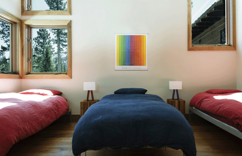 ห้องนอน สำหรับคนที่ยังคงมีความคิดยึดติดอยู่ว่าห้องนอนไม่ควรฉูดฉาดมาก เพราะต้องการให้ดูสบายตา รู้สึกผ่อนคลายเมื่ออยู่ในห้องนอน ก็เพิ่มเป็น ภาพติดผนังขนาดพอเหมาะไว้ ให้ห้องดูมีสีสันก็ได้