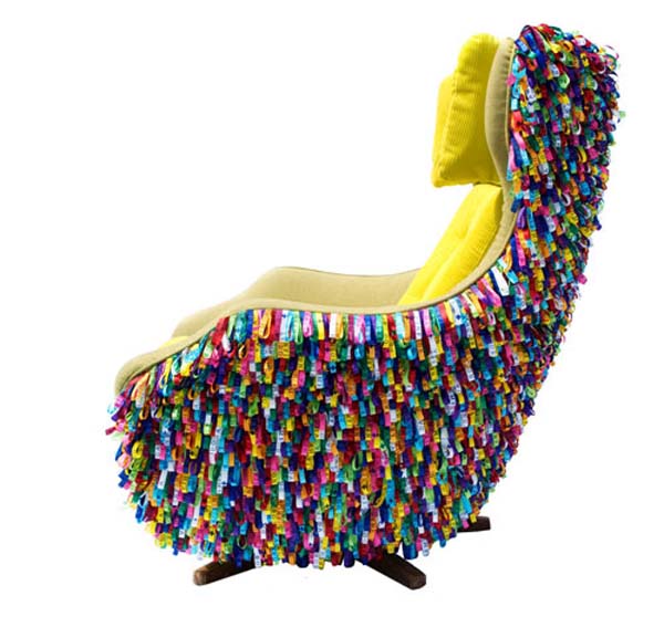 เป็นการออกแบบเก้าอี้ที่ใช้ริบบิ้นที่มีสีสันสวยงามมาทำเป็นเก้าอี้ที่มีสีสันเก๋ไก๋มาก ส่วนในตัวเบาะรองนั่งนั้นก็จะใช้เบาะแบบพิเศษมีความนุ่มมากค่ะเพราะทำมาจากกำมะหยี่และผ้าฝ่ายที่มีสีเหลือง ซึ่งทำให้เข้ากับสีสันของสีริบบิ้นได้ดีที่เดียว เราลองไปดูกันดีกว่าค่ะ