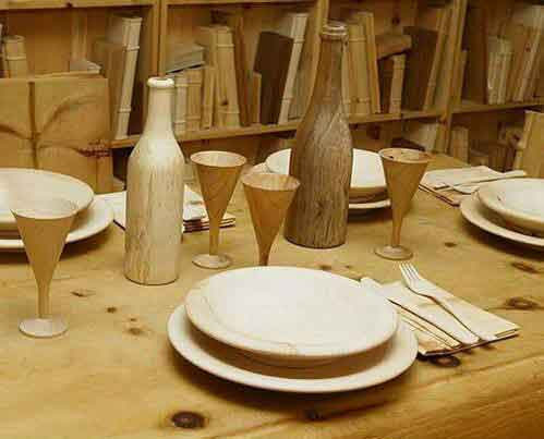 โต๊ะทานข้าว จาน แก้ว ขวดไวท์ เก้าอี้ หรือแม้แต่หนังสือในตู้ด้านหลังก็ไม้ทั้งหมดค่ะ