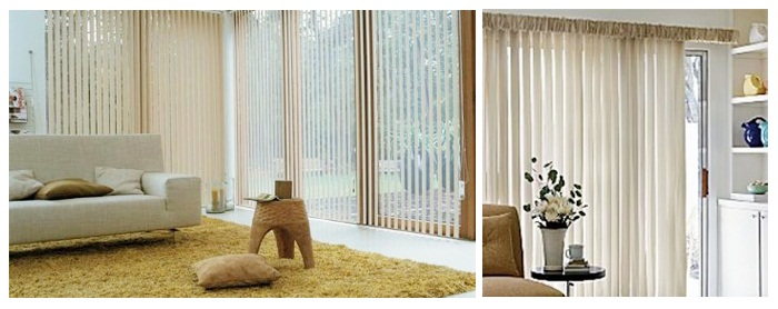 ม่านปรับแสงแนวตั้งมีทั้งที่ทำจากไฟเบอร์และอลูมิเนียม โดยแต่ละประเภทมีลวดลายและสีสันที่สวยงามให้เลือกใช้ได้ตามความเหมาะสมกับห้อง ยิ่งกว่านั้น ยังมีใบชนิดกันแสงแดดซึ่งสามารถกันแสงแดดเข้ามารบกวนในห้องและยังลดความร้อนจากแสงอาทิตย์ อีกทั้งยังลดความเสียหายของสิ่งของภายในห้องเมือถูกแสงแดดนานๆ