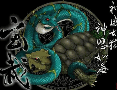 ทิศเหนือ แทนกลุ่มดาวเต่าดำ แต่ละทิศครองดาว 7 ดวง (รวม 28 ดวง)