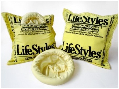 หมอนพร้อมปลอกหมอนรูปถุงยางสีสันสดใสที่เอามาให้ดูกันนี้ ไม่รู้ว่าดีต่อกระดูกสันหลังหรือกระดูกต้นคอรึเปล่า แต่อาจจะทำให้ชายหนุ่มและคู่นอนปลอดภัยจากโรคร้ายทางเพศ เพราะมันมีช่องสำหรับเก็บถุง(ของจริง)ซะด้วย ส่วนชิ้นยาวๆ นั่นเป็นปลอกหมอนข้างครับ ใครอย่าเผลอเอามาใช้จริงซะล่ะ ..