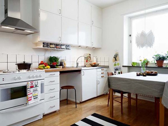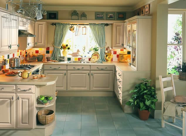 สำหรับการตกแต่งห้องครัวให้บรรยากาศดูอบอุ่นเป็นกันเอง อาจตกแต่งด้วยไม้สีธรรมชาติที่พื้นหรือเพดาน และถ้าต้องการให้ดูสว่างอาจใช้ร่วมกับสีขาวการใช้สีอ่อนจะช่วยให้ครัวดูสะอาดและกว้างขวางขึ้น สีเขียวอ่อน หรือเขียวอมฟ้าใช้กับไม้สีธรรมชาติ ช่วยให้ห้องครัวดูสดชื่นไม่แห้งแล้ง