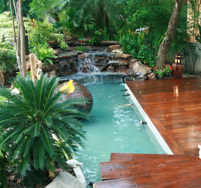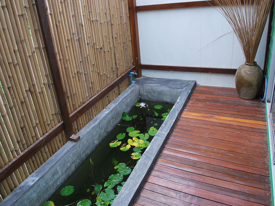 การจัดบ้านของตัวเองให้เย็น มี 2 แบบ จัดบ้านให้เย็นแบบสัมผัสได้ ถ้าง่ายที่สุดเราก็ติดแอร์หรือพัดลม ซึ่งแน่นอนแก้ปัญหาทันที และถ้าบ้านเราไม่ใช้อุปกรณ์เครื่องกลในการลดความร้อนของหน้าร้อน คือน้ำหรือ แก้ว กระจก การมีบ่อปลา หรือบ่อบัวใกล้ๆ เข้ามาช่วยให้เย็นแบบธรรมชาติ
