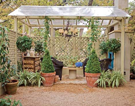 ด้านหน้าของสวนที่น้ำพุทำมาจากเปลือกหอย