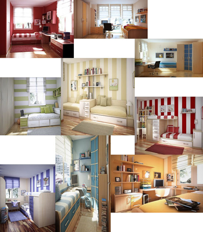 เฟอร์นิเจอร์  การจัดวางควรวางไว้เป็นสัดส่วนชัดเจน หรือไว้ที่มุมใดมุมหนึ่ง เพราะวัยรุ่นส่วนใหญ่ไม่มีระเบียบพอมาถึงห้องก็จะวางโน้นวางนี้ไว้กลางห้อง หรือทั่วห้องโดยอัตโนมัติ(ลองสังเกตดูสิคะ) หากนำเฟอร์นิเจอร์ไปวางไว้ทั่วทุกมุมห้องจะยิ่งทำให้ห้องดูรก และแคบลงทันที