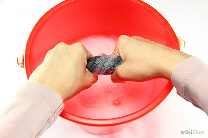 ขั้นตอนที่ 3 จุ่มผ้านุ่มในถังน้ำยาทำความสะอาด นอกจากนี้คุณยังสามารถใช้ฟองน้ำ อย่าใช้แผ่นขัดเพราะจะรุนแรงเกินไปสำหรับวอลล์เปเปอร์