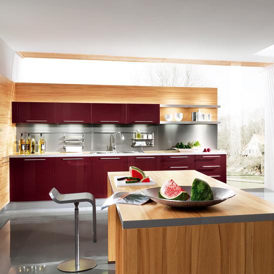 ใช้สีแดงและเพิ่มลูกเล่นให้กับห้องครัวด้วยการติดไฟที่พื้นก็ดูดีทีเดียว