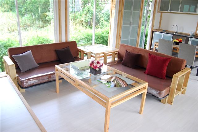 4) เฟอร์นิเจอร์ในห้องนั่งเล่นนั้นควรมีสภาพโปร่งไม่ทึบ เช่น โซฟาที่มีขาลอยตัวจากพื้นห้อง โต๊ะกลางโซฟาที่มีสภาพโปร่งๆ ทำให้กระแสไหลอากาศไหลเวียนใต้โซฟาได้ง่าย รวมไปถึงยังสามารถกวาดถูทำความสะอาดใต้โซฟาหรือโต๊ะได้ง่ายจึงไม่เป็นที่สะสมของสิ่งสกปรก โดยเฉพาะอย่างยิ่งห้องนั่งเล่นที่มีเฟอร์นิเจอร์อยู่ใกล้บริเวณประตูทางเข้าบ้านนั้น หากมีเฟอร์นิเจอร์ที่ใกล้บริเวณประตูมีสภาพโปร่งไม่ทึบก็จะช่วยให้กระแสลมหรือ “ฮวง” นั้นเขามาในบ้านได้ง่าย