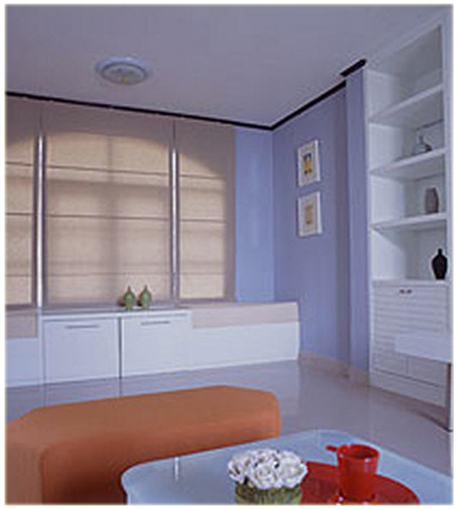 ห้องนั่งเล่นขนาดกำลังดี ที่มีหน้าต่างรอบด้าน และปูด้วยกระเบื้องสีครีมแผ่นใหญ่ ช่วยส่งให้บรรยากาศห้องดูสว่างและกว้างกว่าที่เคย ธีมสีโดยรวมของห้องจึงออกมาในโทนของสีสันใส ๆ เฟอร์นิเจอร์โดยรวมเป็นสีขาว ผนังเป็นสีฟ้า และเบรกกันเลี่ยนด้วยสีเข้ม ๆ ของโซฟาเข้ามุม สีส้มของเก้าอี้สตูล และสีน้ำตาลอ่อนของม่านพับรอบด้าน มีพรมผ้าฝ้ายปูกลางห้องรองรับสมาชิกที่จะมาสังสรรค์ร่วมกันในเทศกาลต่าง ๆ